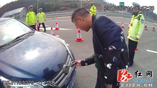 2月14日上午11时27分,高警局张家界支队卡口拦截布控系统突然报警,提示一辆牌号为湘J7T801的蓝色尼桑牌轿车为套牌车辆,正沿长张高速公路往张家界方向驶去。永定大队综合指挥研判室值班民警接到报警后立即通过视频调度系统部署警力拦截。民警立即在长张高速公路张家界收费站和张花高速张家界互通设立拦截观察点,11时53分,正在张家界互通观察的民警发现了嫌疑车辆并将车辆引导至前方张家界服务区进行检查。