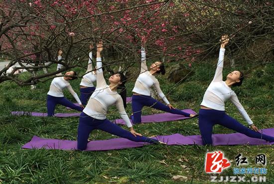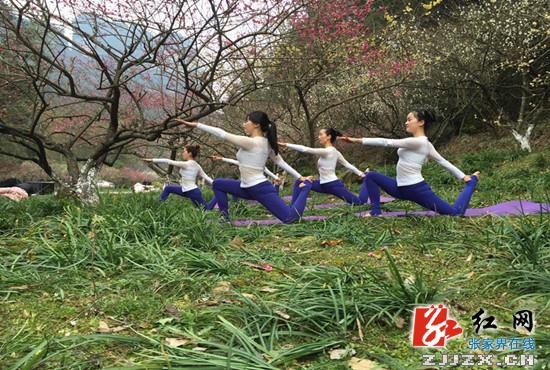 红网张家界分站2月17日讯(通讯员 田川)2月17日,张家界核心景区黄石寨梅园迎来了瑜伽爱好者。他们都是来自张家界本地的专业瑜伽练习者,近段时间黄石寨梅园的梅花盛开的美景刷爆各大电视和网络后,她们想着来用不同的方式赏梅看景。