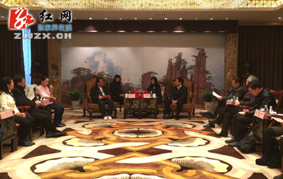 欧阳斌向蓬玛占万赛一行简要介绍了张家界市情。欧阳斌说,张家界因旅游立市,旅游资源丰富、地貌独特,其世界绝版“一根根”的山有“三千奇峰”美誉,被联合国教科文组织命名为张家界地貌,是世界自然遗产地、世界地质公园、中国第一个国家森林公园、首批国家AAAAA级景区所在地。张家界是湖南旅游的龙头,2016年全市旅游接待逾6100万人次,实现旅游总收入443亿元人民币,接待游客总人次在中国同类城市中排名第一。张家界国际交通便利,拥有湖南省两个国际机场之一、三个一类口岸之一,开通了12条国际航线。