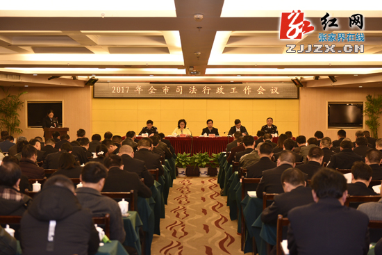 红网张家界分站2月27日讯(记者 廖秋萍 通讯员 朱凌志)为做好今年的司法行政工作,进一步推进全市法治建设、平安建设、干警队伍建设,2月27日下午,张家界市召开2017年全市司法行政工作会议,贯彻落实全省司法行政工作会议和省、市委政法工作会议精神,回顾总结去年工作,表彰先进,全面部署今年工作。市委常委、市委政法委书记刘绍建,副市长、市公安局局长谢振华出席会议。