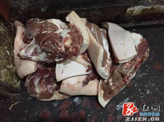 为确保此次活动取得实效,永定区副区长龚建梅亲临奇峰市场指挥,凌晨3点,随着龚区长一声号令,由区食药监局牵头,联合其它部门共计60余人的执法队伍按照分工兵分四路,三个组分别堵住市场的三个入口,不准“白板肉”进入市场销售,一个组进入市场进行肉类检查。行动中,食药监局执法人员仔细检查了市场内待销售的每一块肉,是否有检验检疫证章,对“白板肉”进行了依法查扣。此次行动,共依法查扣“白板肉”311.2斤,并对涉事店铺下达整改通知,提出整改要求,对涉嫌非法经营的当事人将严格按照《食品安全法》和《生猪屠宰管理条例》进行处罚,构成犯罪的,移送司法机关处理。