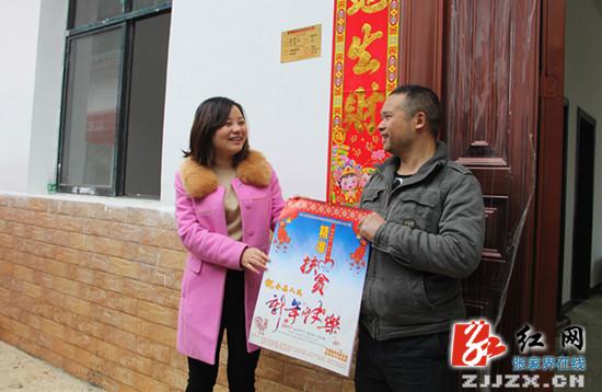 为新入住的群众送去精准扶贫挂历