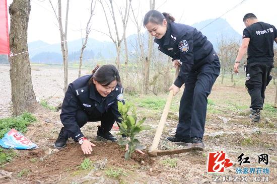 3月29日上午,由永定公安分局政治办、警务保障室、治安大队、城市管理警察大队、旅游警察大队和网监大队联合组成的义务植树队,来到罗塔坪乡太坪村造林植树点,与当地村干部们一起,挥锹铲土参加义务植树活动。