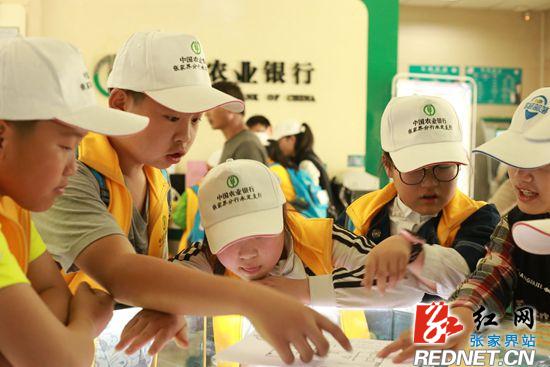 孩子们的神秘任务如火如荼,神秘任务极其丰富,分别在永定支行的三个网点展开,文昌阁支行的“农行网点功能分区线索卡”任务,到达网点的小朋友由大堂经理带领小朋友依次参观自助服务区、超级柜台区、营业网点休息区、现金区、非现金区、理财经理室、贵宾区等功能分区,展现农行注重人性化的布局。然后让小朋友比照网点的线索图,将各个功能区标注出来,标注正确方可获得银行卡的密码。农行回龙路支行的“扫码关注”农行微信银行公众号一展小朋友的风采,孩子们一改往日家长保护下的羞涩,勇敢又有礼貌的向农行大厅的客户交流推广,并邀请客户关注“便民微服务,惠民乐生活”农行微信公众号。农行商业城支行的“卷硬币”任务也是别出心裁,深得小朋友喜爱,“小小银行家们”认真地学习银行柜员技能,手工用纸将硬币包装起来,从刚开始生疏捏不住到卷的有模有样,成功地获得了银行卡密码。孩子们捧着银行卡来到自助取款机前,工作人员手把手教孩子们取款,取完钱又去柜台换取零钱,小朋友非常自豪地说:“我也是农行的小客户了!”。获得启动资金后,孩子们踏上了新的征程。