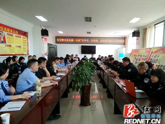 红网张家界分站4月24日讯 (通讯员 赵前进 王四清)4月24日,张家界市公安局交警支队直属一大队召开“大学习、大讨论、大宣导”专题活动推进会,要求大队全体民警和协辅警继续巩固和深化“两学一做”活动效果,进一步加强学习,并持续开展讨论活动,全面提升全体民警和协辅警向心力、凝聚力和战斗力。