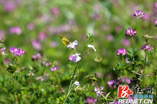 红网张家界站4月24日讯(通讯员 吴勇兵) 4月23日,在张家界市武陵源区中湖乡五号山谷度假民宿,成片的草籽花(又名紫云英)在青山绿树的映衬下绚丽开放,吸引众多中外游客前来观赏,享受乡间春色惬意。