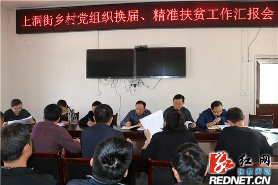 督查汇报会上,皮运舰认真听取了该乡村两委换届和脱贫攻坚突出问题整改工作情况汇报。上洞街乡辖7个行政村,90个村民小组,2538户,总人口10573人。共有10个党支部,其中村党支部5个、村党总支2个、乡直机关支部3个。自村两委换届工作开展以来,该乡认真领会换届精神,全面宣传动员,紧扣时间节点,严格把握程序要求,有序推进村两委换届选举各项工作。截至目前,该乡已完成座谈摸底、推荐初步候选人、资格审查、考察公示、确定正式候选人等程序,将于4月27日至29日进行正式选举。