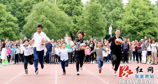 正在进行亲子抱球接力赛