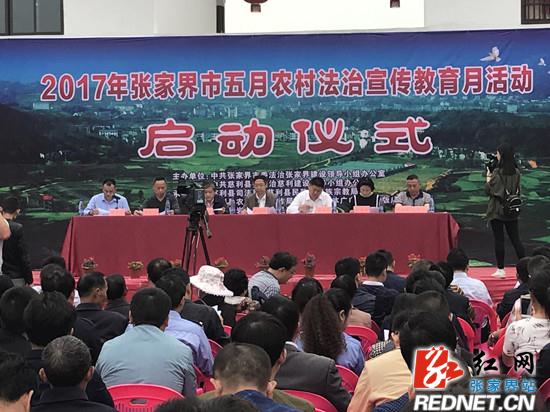 红网张家界分站5月10日讯(通讯员 田俊)5月10日,为进一步加强农村法治宣传教育,充分发挥法治宣传教育在脱贫攻坚工作中的服务和保障作用,实现农村经济社会健康有序发展,2017年张家界市五月农村法治宣传月活动启动仪式在岩泊渡镇“禾田居”农贸市场隆重举行。