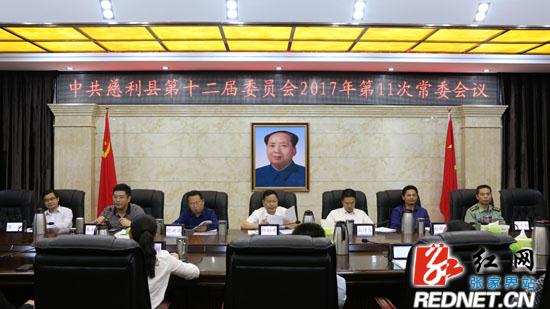 红网慈利分站5月25日讯(分站实习记者 戴雯)5月24日晚,中共慈利县第十二届委员会2017年第11次常委会议召开。县领导邱初开、高靖生、舒洪波、朱超雄、潘志明、侯毅、钟佳君、戴必欣、覃业成参加会议,县人大常委会主任赵群策,县人民政府副县长朱新列席会议。