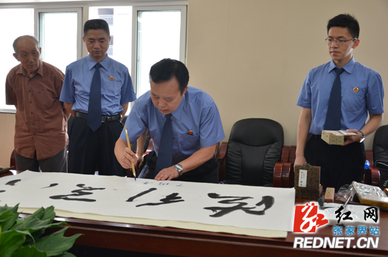 红网张家界分站5月25日讯(记者 范漫)清风颂廉韵,雅墨绘丹青。为传承中华传统文化,丰富检察文化生活,进一步推进文明创建工作,5月25日,张家界市人民检察院举办廉政文化进机关、家庭主题笔会。市人民检察院党组书记、检察长赵荣出席活动。
