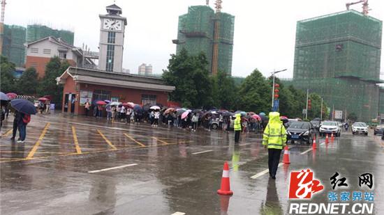 考虑到连绵不断的阴雨天已持续多日,慈利宾馆和芙蓉大酒店接送考生的公交车不少,途经考点之处的道路情况较为复杂,且车流量大,此外也会有不少家长接送离家较近的学生。为避免造成一定程度拥堵,大队派出33名警力分成13个组对两个考点周边路段实行交通管制,要求执勤人员提前一个半小时到达现场,科学分配警力使用警车牵引,对考生和接送考生的相关车辆在管理上给予优先,同时配备了备勤警用摩托车上路巡逻,已备考生紧急求助。