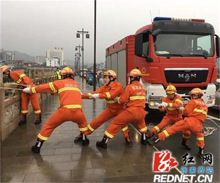 张家界消防官兵进行防洪演练