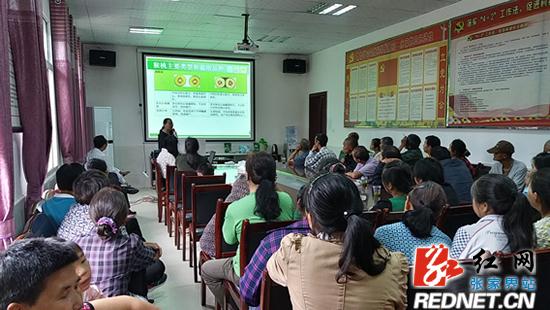 为进一步提高山区群众的种养殖技术, 扎实推进特色产业发展,提高群众种养殖技术水平,促进精准扶贫、巩固脱贫成果,增强贫困群众自身的“造血”功能, 走出一条持续发展的脱贫奔小康之路。6月11日上午,武陵源区天子山街道办事处向家坪居委会举办了精准扶贫种养殖技术培训,该居委会60余人参加了此次培训。武陵源区食药监局的驻村工作队,为这次培训特别邀请了湘西民族职业技术学院的石东升、崔丽红、王霞三位专家教授进行授课。