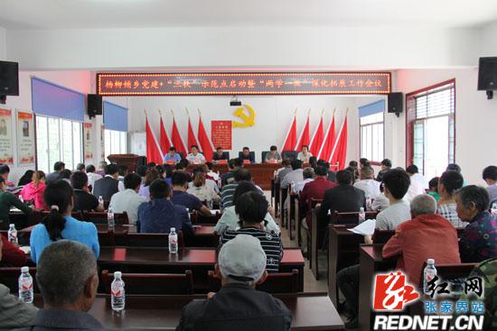 红网慈利分站6月13日讯(分站记者 周鲜红)6月13日,杨柳铺乡党建+“三扶”(扶贫、扶气、扶智)示范点启动暨“两学一做”深化拓展工作会议在杨柳铺乡复兴村召开。慈利县委副书记舒洪波出席会议,并为杨柳铺乡党建+“三扶”示范村揭牌。