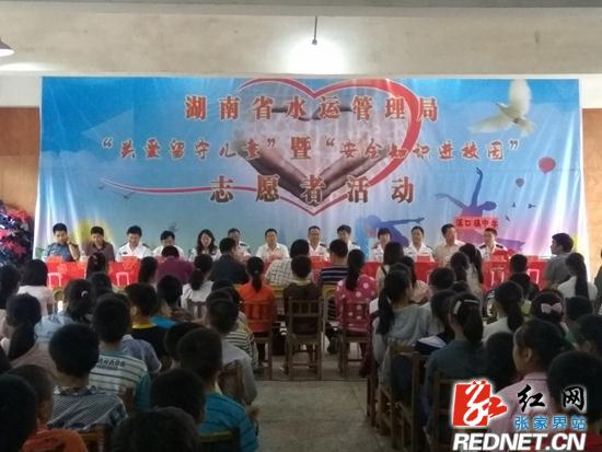 上午9:30,活动正式开始。捐赠仪式上,与会领导共同给该校200余名留守儿童发放安全教育读本、安全插页练习本、书包、学习用品、茶杯等价值5万多元的物品,并与留守儿童合影留念。活动中,省水运管理局安全处向毅同志进行了安全知识讲座,为全体师生们上了一堂生动的水上安全知识课,并让学生进行了演习怎样去坐船、识别船只上标志、穿救生衣等方面的知识,观看了一些水生船只超载的危害性。以血的教训教育和警示师生养成良好行为规范与水上交通规范,加强自我防范意识。