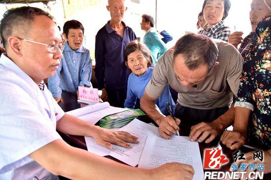 红网张家界分站6月13日讯(通讯员 朱铁华)“‘家庭医生’,在我们看来只有大城市有钱人才能享受到的待遇,没想到像我们这样的贫困户,还能在有生之年免费享受到如此待遇”。在6月11日家庭医生签约仪式活动现场,慈利县通津铺镇氽湖村贫困户黎大爷从张家界市人民医院张五一教授手中接过“家庭医生”签约服务协议时激动的说道。