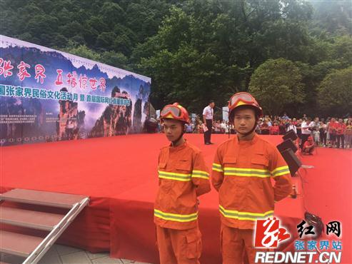 红网张家界分站6月29日讯(通讯员 蒋献辉)6月29日,2017第二届中国张家界民俗文化活动月暨首届国际网红直播旅游节在世界自然遗产地湖南张家界核心景区武陵源水绕四门拉开序幕,武陵源消防大队圆满完成消防安保任务。