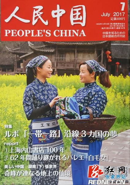 红网张家界分站7月18日讯(通讯员 邓道理 )《人民中国》杂志7月份期刊强力推介旅游胜地张家界!以封面和内页8个版面向读者介绍张家界自然风光和民俗风情、民族美食。武陵源风景名胜区天子山、袁家界、黄石寨等精华景点及张家界大峡谷、天门山、王家坪等主要景区的风光人文都进行了精彩展示。