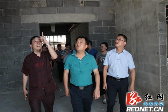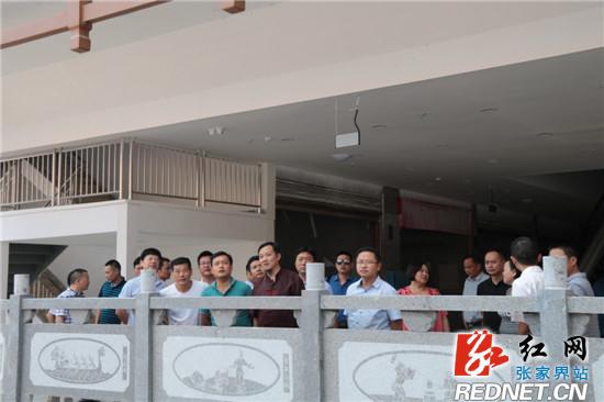 在廊桥项目建筑三楼施工现场,金晨、赵云海一行人观看了廊桥周边后续各项发展规划,赵云海向金晨介绍了廊桥项目对于本地区的经济建设意义,并指出,在桑植县旅游文化发展中,打造品牌项目是必要的。金晨表示,此行收获颇多,屈原管理区和桑植县情况类似,有丰富的旅游文化资源,桑植县的成熟经验值得借鉴。