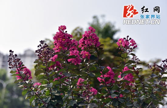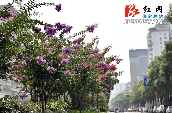 紫薇花开,让张家界市城区添“色”。