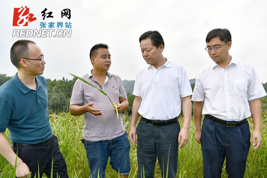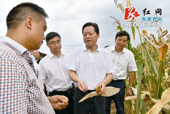 7月31日,市委书记、市人大常委会主任虢正贵在永定区三家馆乡杜家岗村实地察看农作物受灾情况。