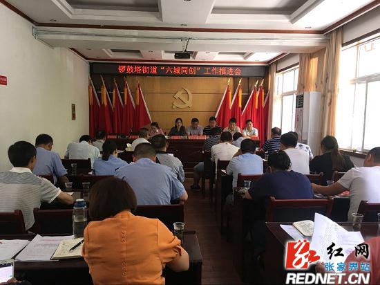 红网张家界分站7月31日讯(通讯员 胡新鹏)7月31日上午,武陵源区锣鼓塔街道召开了“六城同创”工作推进会,街道全体干部职工、交警、城管、运管、学校及各个社区书记、主任参加此次会议。