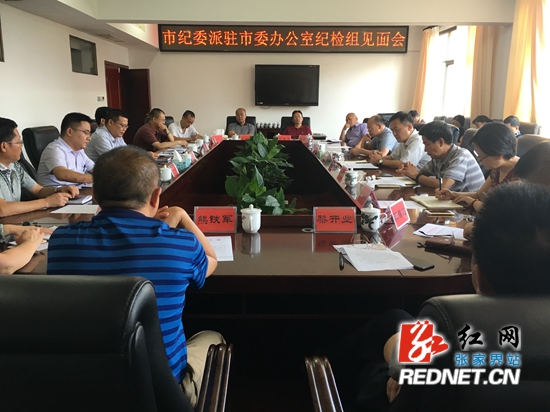 红网张家界分站8月1日讯(记者 全江玲)8月1日下午,市纪委派驻市委办公室纪检组见面会举行。市纪委副书记许云锦及市委办公室、市委政研室、市总工会、团市委、市妇联五家驻在单位和综合监督单位班子成员参加会议。市委副秘书长、市委办公室主任沈刻明主持会议,主要负责人作了表态发言。