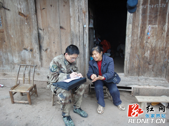 新阳村是红二方面军长征出发地——桑植县刘家坪白族乡的一个行政村,下辖18个村民小组,人口449户1580人,建档立卡贫困人口128户475人,截止2016年底全村仍有60户共211名贫困人口尚未脱贫。面对新阳村贫困面广、程度深,自然条件差,村组道路建设不完善,无村级组织活动中心,无规模化、支柱性产业,村集体经济空白等艰难现状,他说,作为深入脱贫攻坚一线的一名军人,当时什么都没想,就想传好省军区帮助老区人民脱贫致富的接力棒,把驻村帮扶当使命职责干好!