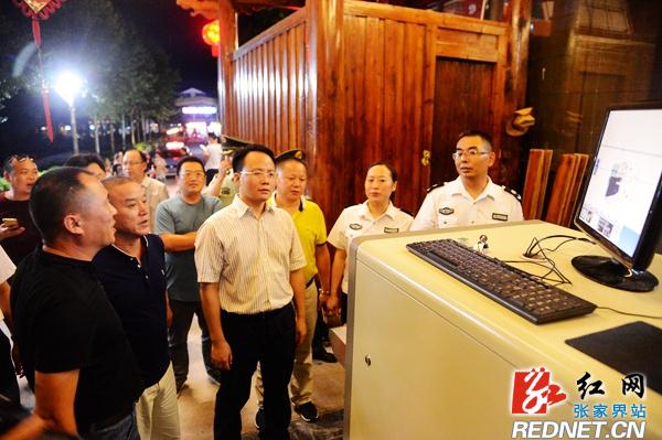 夜幕降临,华灯初上,车流如织,人流如潮,武陵源各大演艺场所呈现出一派火爆景象。当晚7点半至9点半,郑小胡一行先后来到张家界魅力湘西、梦幻张家界、烟雨张家界三大剧场,重点检查督查各演艺场所全面推进“落实企业安全生产主体责任年”活动规定的“一必须”和“五到位”的情况。每到一处,郑小胡都向相关演艺场所负责人认真了解企业安全生产责任制落实情况,详细检查安防设备设施检查维护保养与安全运行、安全生产投入和隐患排查治理、应急响应预案等内容,查看了演艺场所人员逃生通道畅通及主要负责人、关键环节、关键部位、重点岗位人员到岗到位和履职情况。