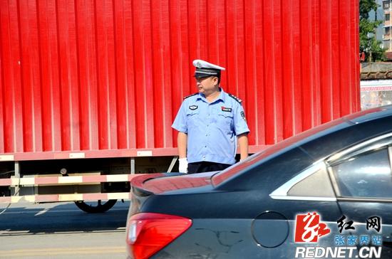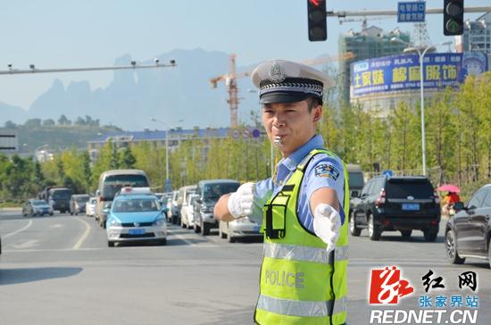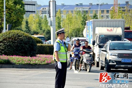红网张家界分站8月1日讯 (通讯员 赵前进 王四清)8月1日上午,在张家界市城区主要交通路段,张家界市公安局交警支队直属一大队民警和协辅警头顶烈日,在指挥疏导交通或查处交通违法行为。