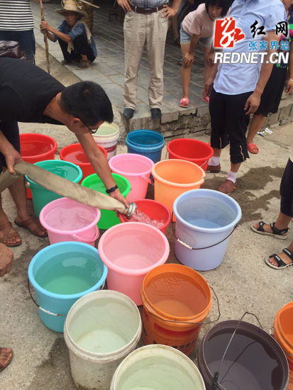 “千万要小心点放水,不要浪费一滴水。”水终于放出来了,村民们接水的同时还不忘提醒工作人员要小心。