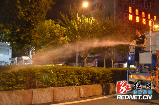 连日来,张家界市持续高温天气。根据市住建局统一安排部署,自7月15日起,张家界市园林绿化管理处迅速启动抗旱保苗应急预案,组织进行抗旱保苗工作,为城市绿化景观“降温”。每天,抗旱保苗一线工作人员从晚上6:00至次日10:00均坚守在岗位上,让花草树木能过安全度过高温天气。