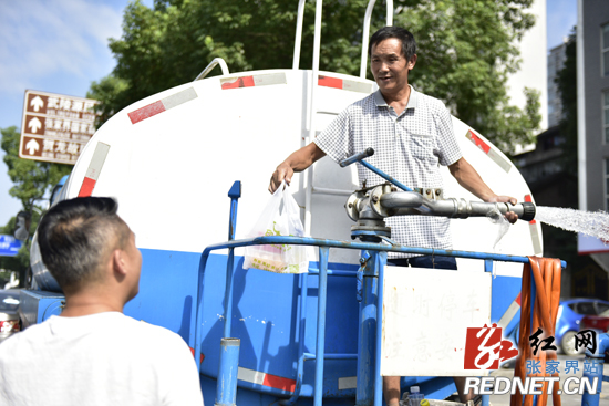 红网张家界分站8月3日讯(记者 王洁)“你们工作辛苦了,这是我们送给你们的一份小心意。”8月1日,在市城区凤湾路口,爱心企业印象果园工作人员将“清凉”包送到张家界市园林绿化管理处抗旱保苗一线工作人员手中,让大家感动不已。