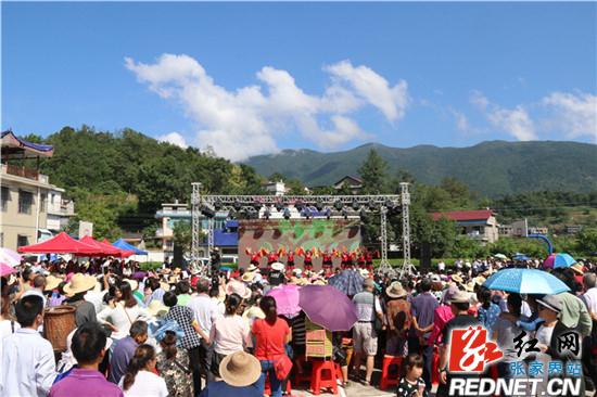 红网时刻9月11日讯(桑植分站记者 黎治国)9月11日,是农历七月二十一,也是一年一度桑植县空壳树乡陈家坪传统赶庙会的日子。在陈家坪村,车水马龙,游客如织,如过节般热闹非凡,由陈家坪村支两委主办、张家界艺心有限公司协办的“空壳树陈家坪首届民俗文化旅游节暨陈家坪学校建校65周年”庆典活动热烈举行,共吸引了10000余多名市民及游客。