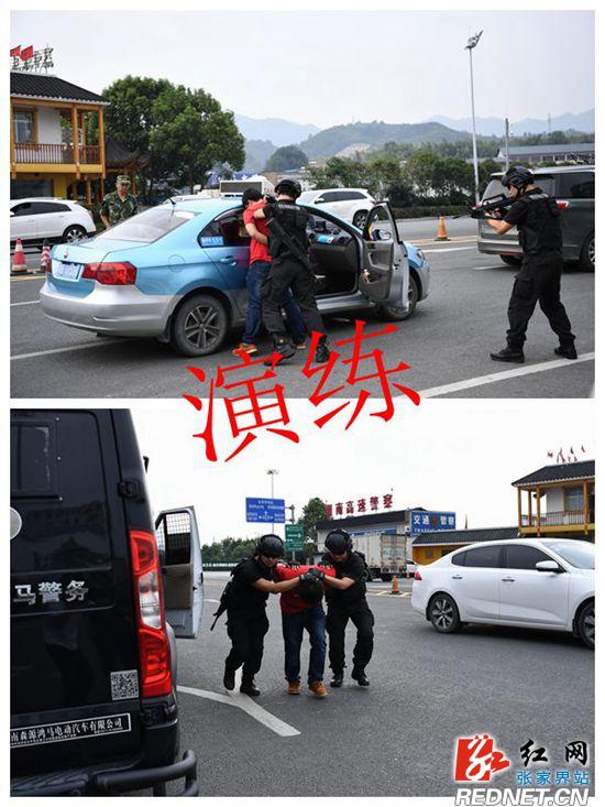 16时10分,湘GT2XX6出租车到达阳湖坪高速路口,嫌疑人赵某被成功抓获,演练圆满完成。