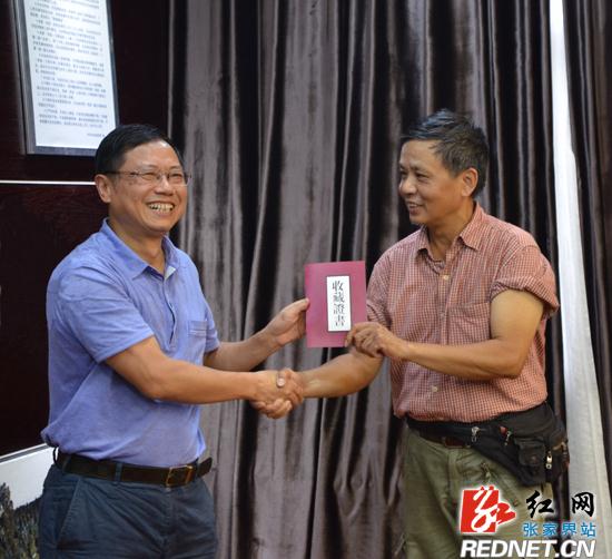 邱初开对各位艺术家的到来表示热忱的欢迎,他指出,各位画家都有独特的眼光与灵动的内心,能够发现美、定格美、描绘美、呈现美、传播美,通过手中的画笔将慈利的山水风光用不一样的形式展现出来,同时将写生的成果融入到慈利的文化建设中来,慈利县档案馆一定好好保存这十副画作。在此,也再次邀请各位艺术家今后来到慈利县,发现更多地风景,挖掘慈利深厚的人文底蕴,通过优美的画作推介慈利,宣传慈利。