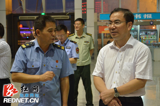 刘革安一行先后深入市中心汽车站、火车站游客服务中心和火车站候车大厅、张家界荷花国际机场候机大厅等地,边走边听边看边检查,详细了解各个站场的安全生产、车辆调度、现场管理、实时监管、应急处理等工作情况。