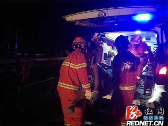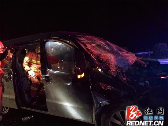 红网时刻9月30日讯(通讯员 刘慧)9月30日凌晨1时30分许,张花高速向西30公里接近茅岩河服务区处发生一起小车追尾大货车事故,导致车内4人被困,其中一人伤势严重,情况危急。张家界市永定区公安消防大队接到报警后,立即出动一辆抢险救援车、8名官兵赶赴现场处置。