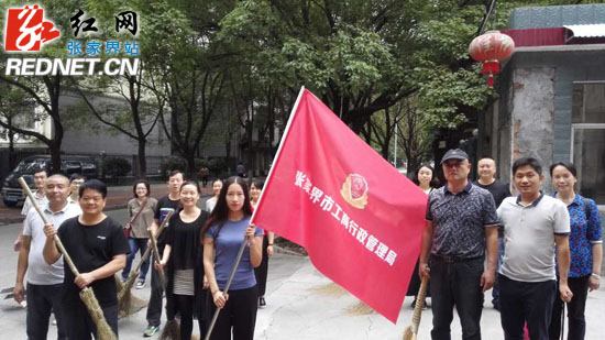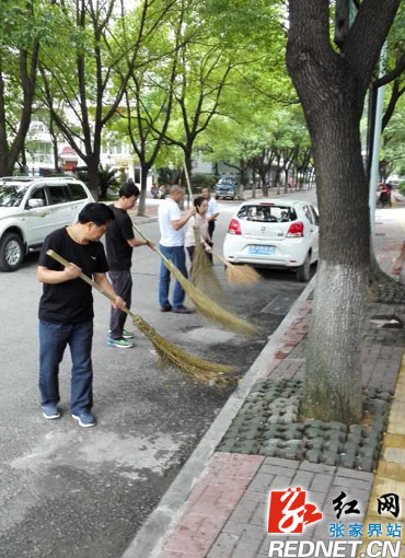 在局党组成员李成友带领局机关工作人员一行22人,对市城区南庄坪五子坡街大庸路西侧路段进行了卫生清理,对路面、绿化带、卫生死角及“牛皮癣”全面清除;对过往的行人、车辆进行了文明劝导,劝导他们垃圾入箱不乱扔,摊点归市不乱摆,坐商归店不占道,车辆行驶遵交规。