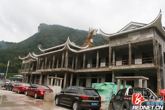 位于位于武陵源核心景区吴家峪门票站入口的武陵源游客服务中心项目建设不断加快。在项目施工现场,记者看见,游客服务中心几座建筑已经初现雏形,项目主体工程已经完工。武陵源游客服务中心项目于2014年2月开工,计划于2018年全面竣工。目前,项目已进入收尾阶段,正待装修和招标。“10月1日前保证游客正常通行,地下停车场、广场和政府办公用地保证在12月之前交给政府投入使用。”项目负责人黄飞华向记者介绍,武陵源游客服务中心项目是省、市、区重点建设项目之一,项目总建设面积达10万平方米,由张家界驼峰有限公司投资建设。项目建成后,将是国内景区最大的集地下停车场、游客集散广场、门票及旅游线路服务、综合性商业服务等多重功能于一体的超级旅游综合服务体。其中地下停车区总面积达6万平方米,可同时停放728辆大、中、小型客车,单日可满足2万余名游客的停车需求。