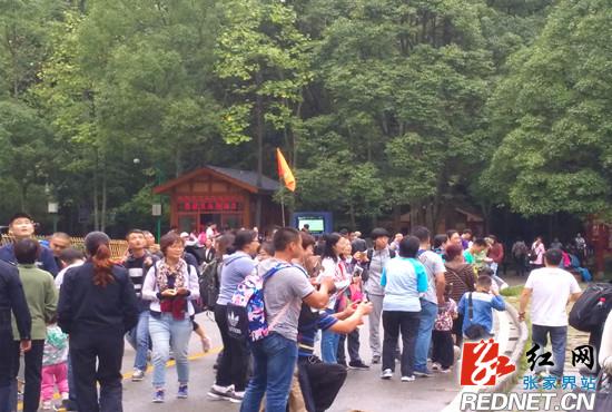 张家界核心景区内各景点游人如织、热闹祥和,景区游览秩序却忙而不乱、有条不紊。为应对客流高峰,张家界核心景区武陵源做足了充分的准备,严格按照“十一”黄金周的旅游接待标准部署和安排做好旅游接待工作。景区工作人员全员上岗,全面对外开放停车位,在交警和城管等调剂、管理和引导下,自驾车辆有序进出、停放,确保了自驾车“进的来、停得下、出得去”。