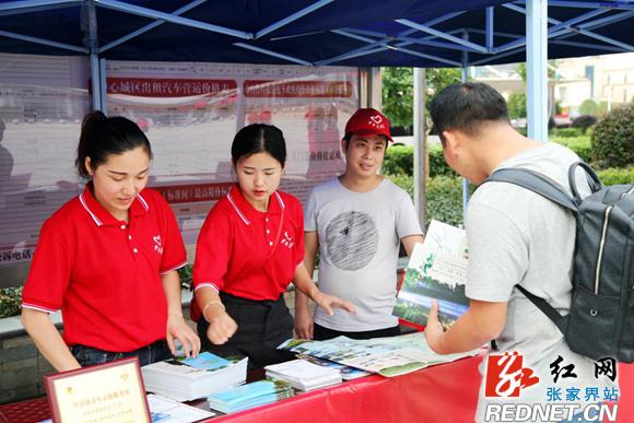 老道湾景区组织青年志愿者在市区游客集散地为游客提供免费咨询服务