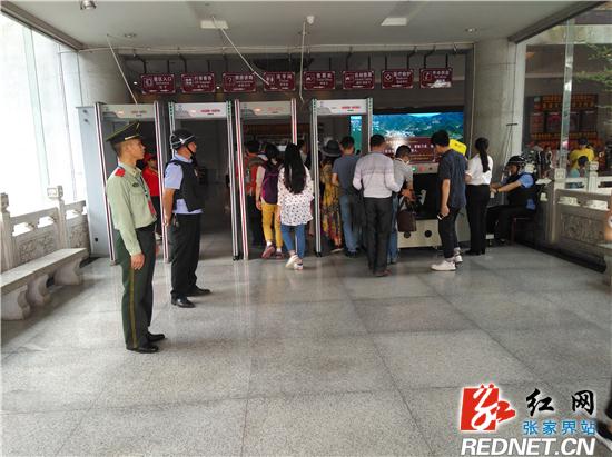 上午8点58分,吴家峪门票站执勤的公安特警、武警,游客有序通过安检
