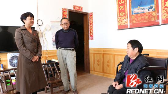 “您这腿还能走吗?有没有看医生?”在东岳观镇彩球村离任村干部林昌盛家中,吴清英仔细与其妻子交谈,询问她的病情。林昌盛2009年因车祸造成左腿残废,勉强还能行动,其妻2001年因患内风湿关节炎,多方治疗无效,最终造成双腿瘫痪。吴清英叮嘱他们要照顾好身体,平时出门走动一下,虽然生活比较困难,但是党和政府不会忘记老党员。谈起党的十九大的召开,林昌盛也颇为激动,他十分感谢党和政府的关心,表示将继续支持村支两委的工作,发挥自己这个老党员的余热。