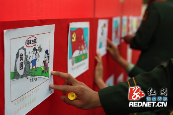 红网时刻10月27日讯(通讯员 胡津铭)党的十九大召开后,武警湖南省总队张家界市支队迅速掀起学习贯彻党的十九大精神热潮,该支队官兵们纷纷拿起手中的画笔,用漫画的形式诠释党的十九大精神要义,把党的十九大精神和心中的忠诚信仰变成一幅幅形象直观的漫画,成为警营一道的靓丽风光。