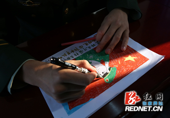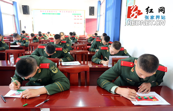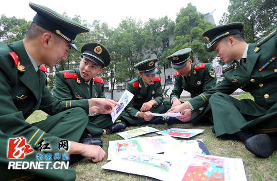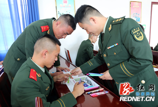 该支队官兵正在精心绘制“十九大”精神主题漫画
