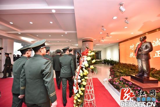 向毛泽东同志铜像敬献花篮