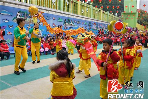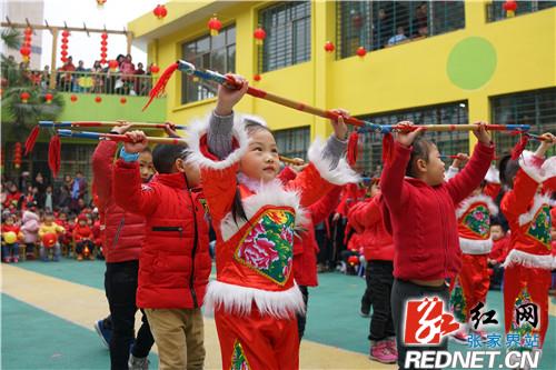 红网时刻12月29日讯(通讯员 胡英)12月29日一大早,张家界一幼张灯结彩喜气洋洋得迎接家长和孩子们参加喜迎新春非遗文化庙会活动。幼儿园特别引进了优秀传统剧目--高花灯,狮子灯,九子鞭,摆手舞等。充分展示国家级非物质文化遗产的魅力,让孩子们在耳濡目染中亲身了解并传承家乡优秀的传统文化。