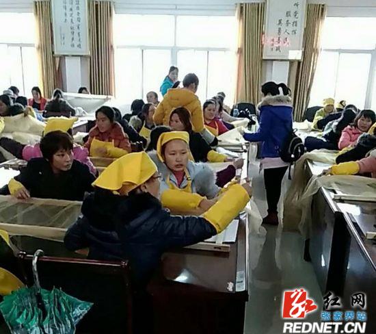 红网时刻1月17日讯(通讯员 田贵学)1月16日,在张家界市永定区沅古坪镇,来自该镇100多名贫困妇女正在参加由区妇联、区扶贫办、张家界摆手舞民族艺术服饰有限公司等联合举办的手工编织培训。这也是张家界摆手舞民族艺术服饰有限公司融入永定区脱贫攻坚所涌现出的一个小小镜头。
